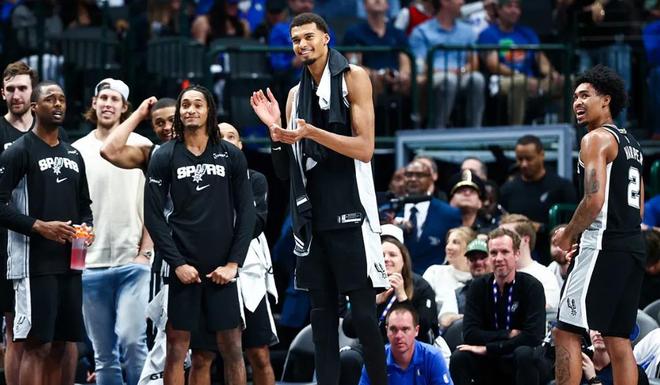 常规赛的到来,更是让马刺的黑马本色彻底爆发。首战对阵美媒眼中“同水准”的独行侠,马刺以125-92的33分大胜刷新外界认知,文班亚马狂砍40分15篮板3盖帽,用无解的攻防表现将独行侠的内线搅得支离破碎。要知道,独行侠本拥有身高优势,可在文班亚马面前,那些所谓的“高点”却成了摆设——他既能在篮下强硬卡位抢板,又能拉到外线命中三分,甚至还能持球突破完成对抗上篮,这种全方位的统治力,在2.26米的身高下显得格外离谱。